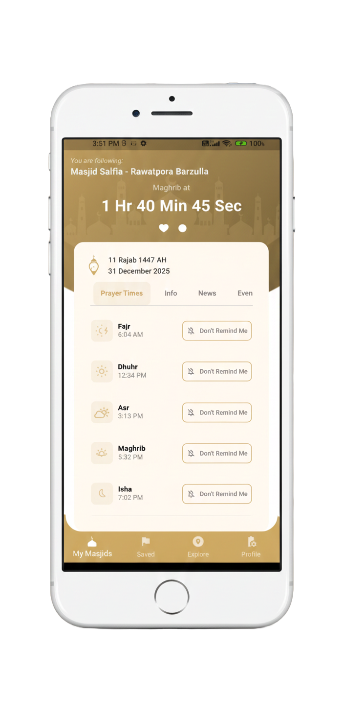 View accurate prayer times shared directly by mosques you follow, ensuring reliability and consistency for daily prayers.