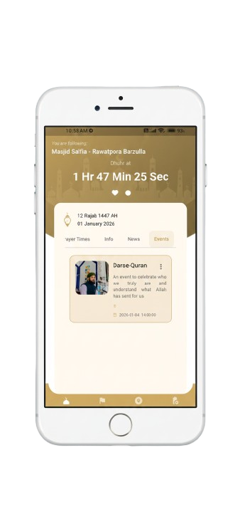 Stay informed with events, announcements, and important notices shared directly by mosques, helping communities remain connected and engaged.